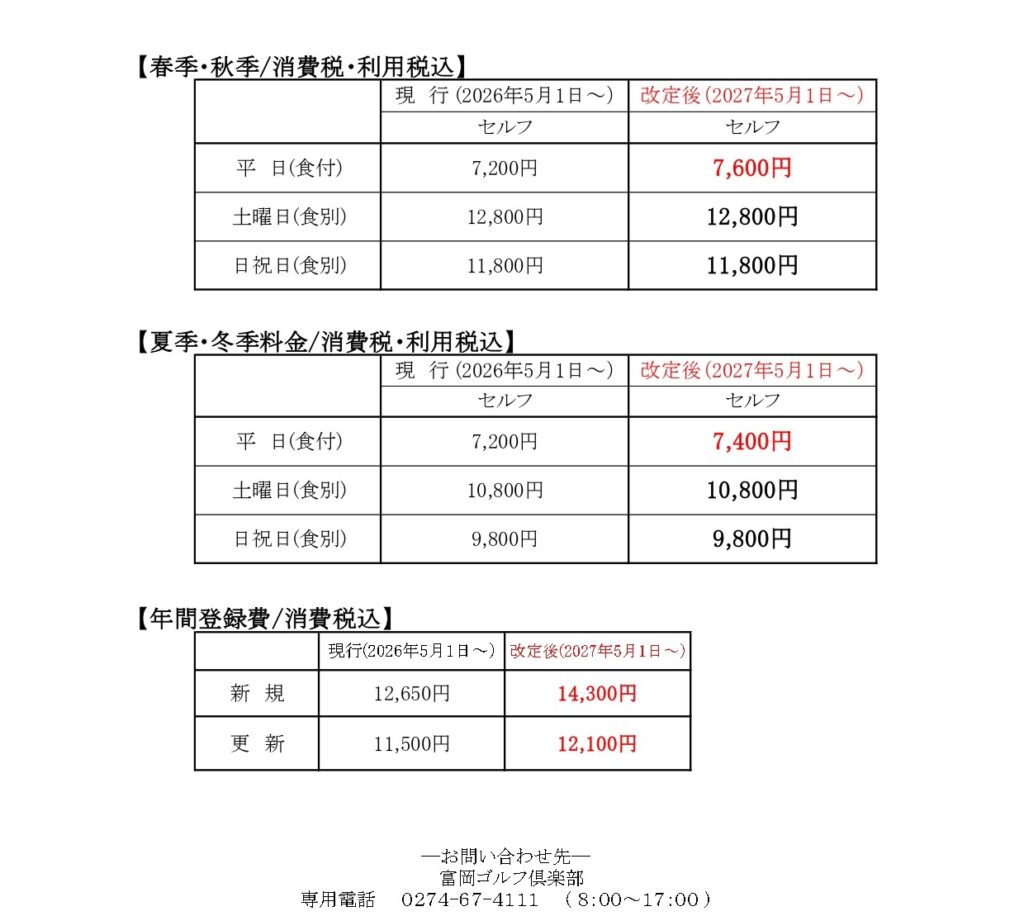 平素より富岡ゴルフ俱楽部をご利用いただき誠にありがとうございます。