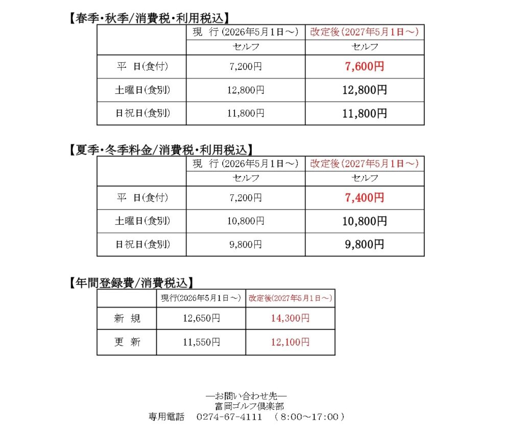 平素より富岡ゴルフ俱楽部をご利用いただき誠にありがとうございます。